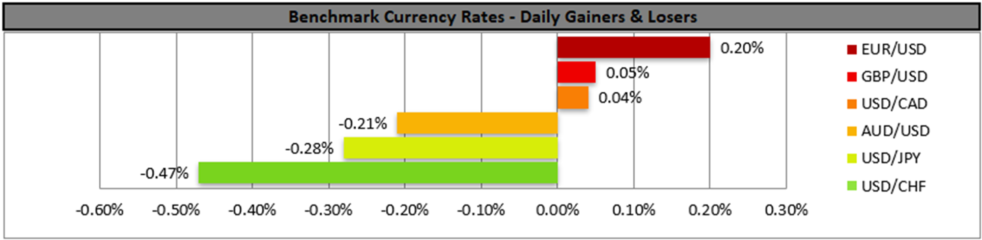 On a fundamental level, we note the World Economic Forum, throughout the week. On Tuesday, we get UK’s employment data for November and Germany’s ZEW indicators for January. On Wednesday, we get UK’s CPI rates for December and Canada’s CPI rates for the same month. On Thursday we get Japan’s trade data for December, Australia’s employment data also for December, in Norway and in Turkey, Norgesbank and CBT are to release their interest rate decisions, from the US we note the release of the weekly initial jobless claims figure, the final GDP rate for Q4 and Core PCE rates for November, while from New Zealand we get Q4’s CPI rates. Finally on Friday, we get Japan’s CPI rates for December, the preliminary PMI figures for January and BoJ is to release its interest rate decision, in the UK December’s retail sales growth rate is to be released and we also get Germany’s, France’s, the Euro Zone’s, the UK’s and the US preliminary PMI figure for January, Canada’s retail sales for November and the final US University of Michigan consumer sentiment for January.