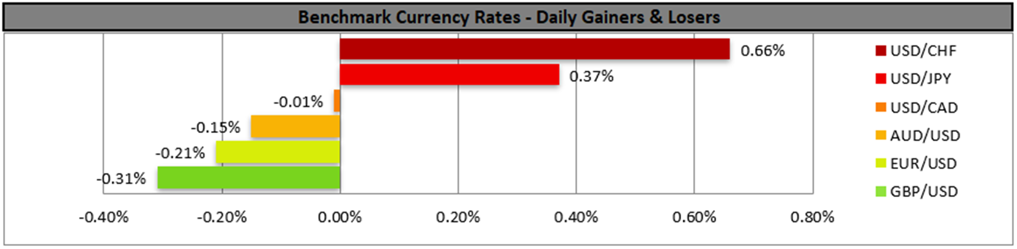 The CAD resisted the strengthening of the USD yesterday, allowing for USD/CAD to maintain its sideways motion between the 1.3610 (R1) resistance line and the 1.3485 (S1) support line. We tend to maintain our bias for the sideways motion to continue, yet note that the RSI indicator remains above the reading of 50, implying that a residue of a bullish sentiment for the pair is still present among market participants. Should buyers take over, we may see the pair breaking the 1.3610 (R1) resistance line and aim for the 1.3710 (R2) resistance level. On the other hand, should a selling interest be expressed by the market, we may see the pair breaking the 1.3485 (S1) support line and aim for the 1.3365 (S2) support level.