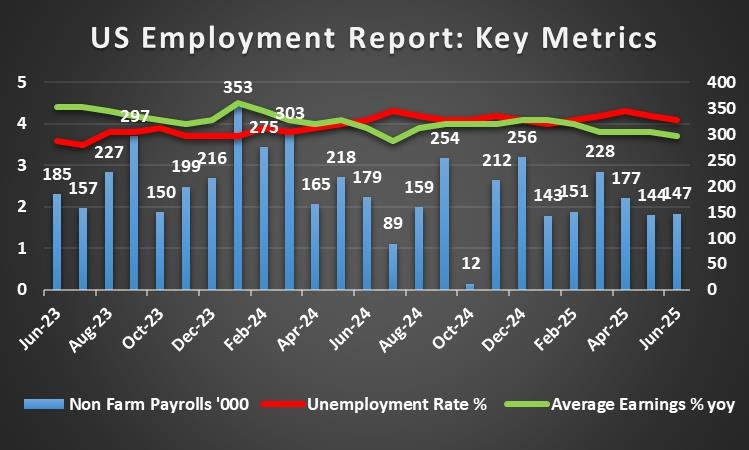 “Developments in the US are expected to keep the markets on the edge of their seats as we have in the calendar high impact releases and issues. WE expect market interest to heightened from Wednesday onwards as the US GDP rate for Q2, the Fed’s interest rate decision, June’s PCE rates, July’s employment data and US President Trump’s tariff deadline on the 1st of August could keep volatility high not only for USD pairs in the FX market but also have ripple effects in US equities markets and gold’s price.”