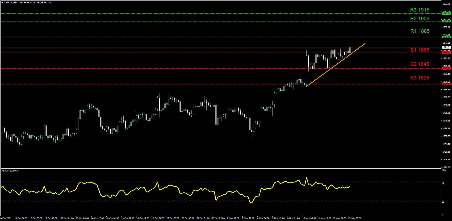 As we had accurately predicted in our previous report, the most important event for the Gold market in the past week was the US inflation data released on the 10th of November. The data confirmed inflation continues to be on the rise in the US, both on a monthly and yearly basis. The release enacted a strong bullish reaction for Gold’s price, as the instrument’s positive relationship to higher inflation rates, instantly came into play. In the next 30 minutes after the release, Gold’s price jumped approximately $30, displaying striking movement. However, on a separate note the USD’s correlation to Gold’s price seems to have reversed its normal course. The USD a traditional counter to Gold’s price is currently trading at a 16 month high price basically mirroring Gold’s recent surge. Thus, correlation between the two instruments has turned positive but may require caution when used by traders for signals, as it could be on and off in the short term. Another reading from the previous week that stood out from a Gold’s perspective was the Preliminary University of Michigan Consumer Sentiment for November that dropped substantially from 71.7 to 66.8. Some analysts argue that consumer sentiment has been impacted greatly and may remain soft by the ongoing rise of the inflation rates, especially as these circumstances are expected to follow us well into 2022. Gold moved higher upon release of the news and seems to have maintained this upward tendency in the most recent sessions.