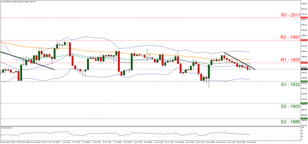 On the other hand, should the bulls take over, we may see the gold’s price breaking the prementioned downward trendline in a first signal that the downward movement has been interrupted, breaking also the 1955 (R1) resistance line and setting its sights on the 1983 (R2) resistance level, which is also marking the highest level in our chart currently.
