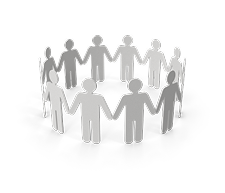 Two speech bubbles with blue dots, representing a conversation between two people