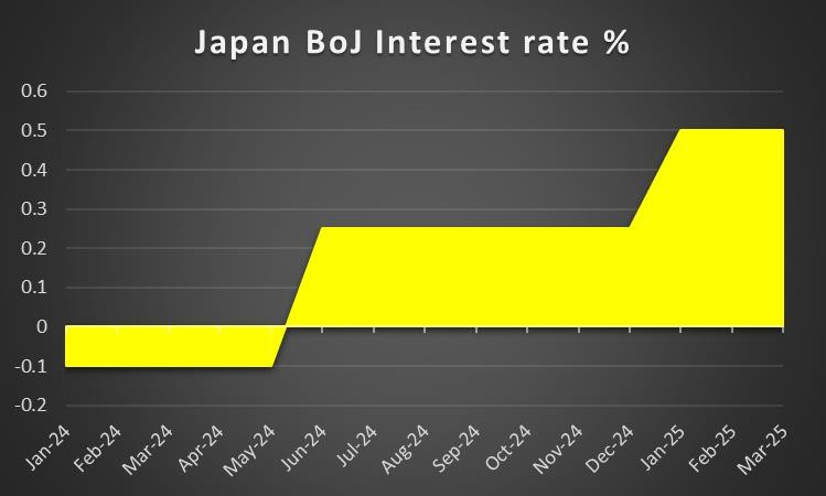 On a monetary level the highlight for Yen traders in the coming week is to be BoJ’s interest rate decision next Thursday. As per JPY OIS the market, as these lines are written, seems to expect the bank to remain on hold and to remain at that level, with the expectations for a rate hike reaching almost 50% for the December meeting. A number of analysts tend to highlight the possibility of the bank proceeding with more rate hikes with one possibly being on Q3, citing BoJ’s focus on the inflationary pressures in the Japanese economy. Hence market attention is expected to shift on the bank’s forward guidance which is to be included in the accompanying statement and the press conference which is to follow. We expect the bank to cite the uncertainty caused by Trump’s tariffs regime which may ease any expectations for a rate hike and thus could weigh on the Yen, yet should the bank’s focus shift towards inflationary pressures it could be signaling a possible rate hike thus supporting JPY .