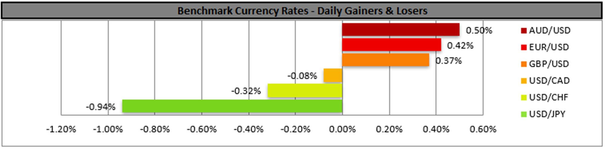 USD/JPY hit a ceiling at the 154.65 (R1) resistance line and edged lower. Despite the correction lower, we tend to maintain our bullish outlook as the upward trendline guiding the pair for the past month remains intact. Furthermore also note that the RSI indicator despite correcting lower is still between the readings of 50 and 70, implying a bullish predisposition on behalf of market participants. Should the bulls maintain control over the pair we may see USD/JPY bouncing on the upward trendline and breaking the 154.65 (R1) resistance line, forming a higher peak, while even higher we note the 158.45 (R2) resistance hurdle. A bearish outlook seems to be remote currently, yet for it to occur, we would require the pair to break the prementioned upward trendline in a first signal that the upward movement has been interrupted, but also the pair has to break the 151.35 (S1) support base, aiming of the 149.40 (S2) support level.