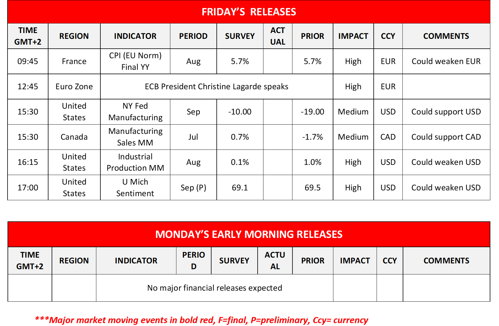 In today’s European session, we note the release of France’s final HICP rates for August, while ECB President Lagarde is expected to speak. In the American session, besides the US data, we also note the release from Canada of the manufacturing sales for July.