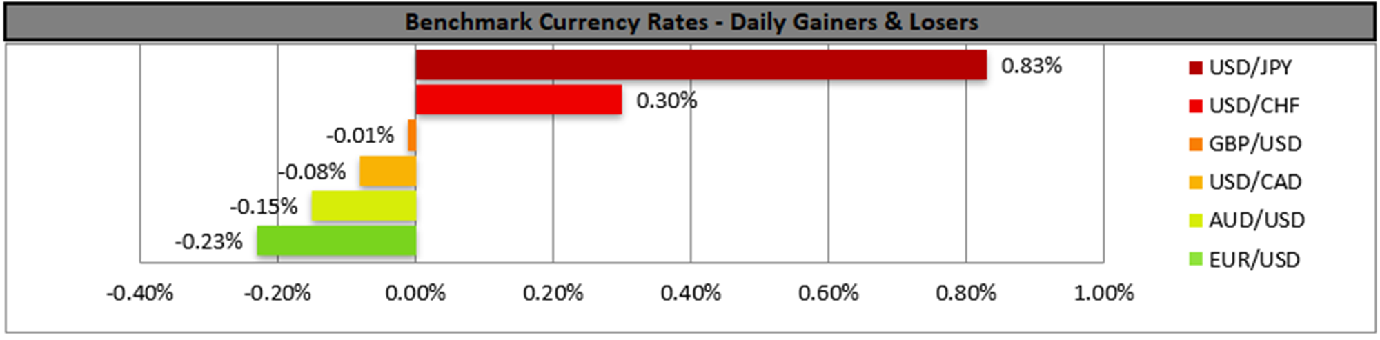 The USD index edged higher yesterday, indicative of the strengthening of the greenback against its counterparts. US fundamentals and especially hopes for some progress in the negotiations of the White House with Republicans about a rise of the debt ceiling, tended to provide some support for the USD and with the exception of JPY which tended to experience safe haven outflows, volatility in the FX market tended to remain at rather low levels. Yet at this point we note that Japan’s trade data for April tended to be a bit worrying as despite the trade deficit narrowing more than expected, the export and import growth rates also slowed down and drop into the negatives respectively, which could be perceived as sign of slowing economic activity for the month, an indication especially crucial for the export-oriented Japanese economy. Attention now turns to the release of Japan’s CPI rates for April tomorrow during the Asian session and should the rates accelerate, we may see the Yen bears hesitating as that may increase the pressure on BoJ to modify its ultra-loose monetary policy settings.