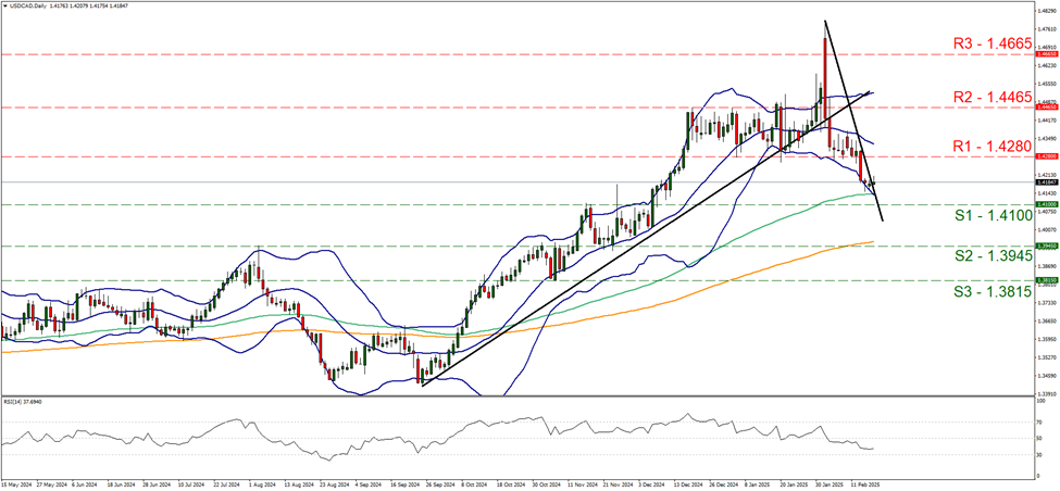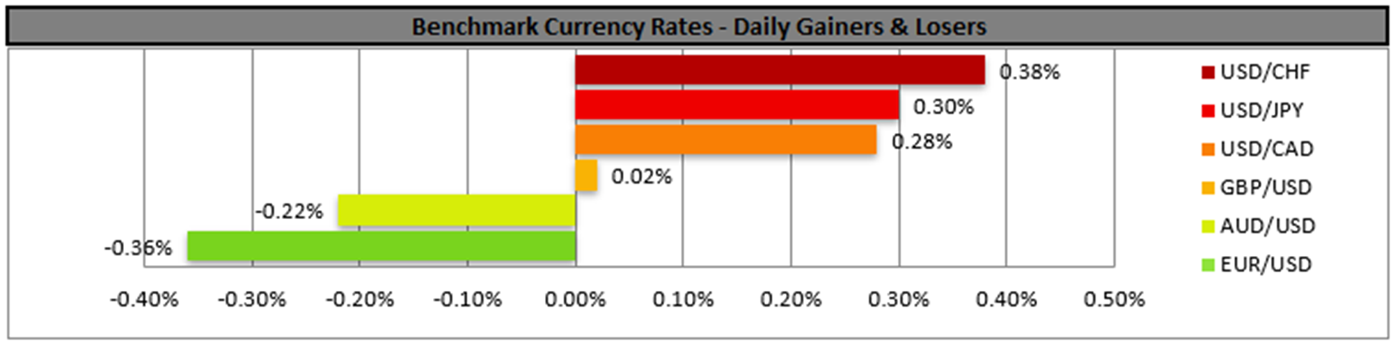 USD/CAD remained relatively stable yesterday, between the 1.4280 (R1) resistance line and the 1.4100 (S1) support level. The interesting element of the pair’s movement is that it’s putting the downward trendline that has been guiding the pair since the 3  of February to the test. On the other hand, the RSI indicator remains near the reading of 30 implying that the bearish predisposition of the market for the pair. Hence should the pair’s price action clearly break the prementioned downward trendline we would switch our bearish outlook in favour of a sideways motion bias. For a renewal of the bearish outlook we would require USD/CAD to break the 1.4100 (S1) support line and to start aiming for the 1.3945 (S2) support level. On the flip side should the bears take over, we may see USD/CAD rising, breaking the 1.4280 (R1) resistance level and starting to aim for the 1.4465 (R2) resistance level.