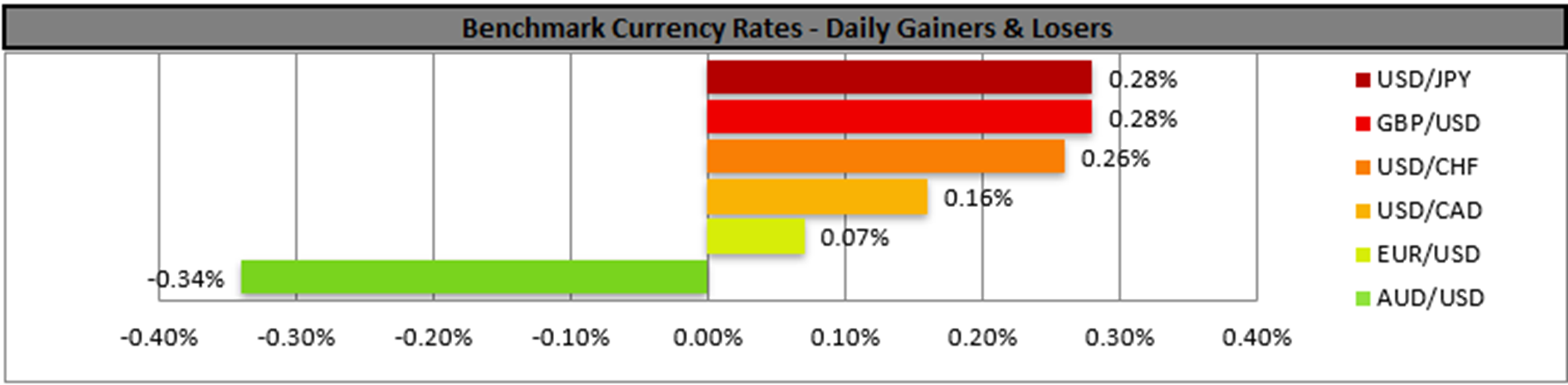 Today we get the preliminary GDP rates for Q3 of the Czech Republic as well as Switzerland’s October KOF indicator. Oil traders on the other hand may be more interested in the release of the weekly EIA crude oil inventories figure, especially after the unexpected drawdown reported by API yesterday. Should also EIA take the markets by surprise and report also a drawdown, it would imply that oil demand levels in the US surpassed aggregated oil supply, thus that the US oil market is tightening, which could provide some support for oil prices.