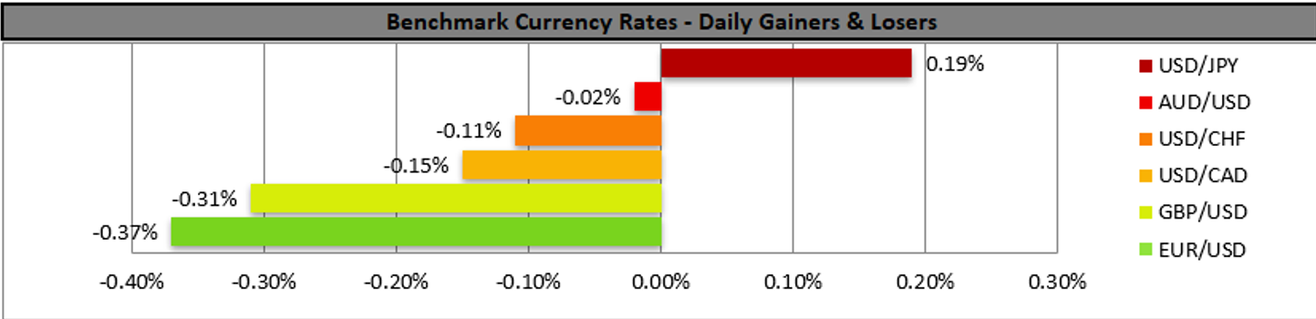 The USD edged higher yesterday against its counterparts, yet the overall sideways motion seems to continue as the greenback seems about to end a five-week winning streak. On a monetary level, the Fed’s hawkish intentions were on display once again yesterday as Fed Policymakers made relevant statements. Fed Board Governor Waller was reported stating that should data show remain “hot”, ie. show an excessively strong employment market, robust consumer demand and stubbornly persistent inflationary pressures. Then the bank’s terminal rate should be higher than the 5.1%-5.4% range. The statement highlighted the possibility of the Fed raising its interest rates beyond market expectations and keeping them at high levels for a prolonged period of time, which may provide additional support for the USD should the hawkish statements intensify further. On the flip side, Atlanta Fed President Bostic reiterated his preference for a 25 basis points rate hike mentioning that he favoured “slow and steady“ rate hikes, easing the market worries for a possible overtightening of the Fed’s monetary policy and thus capping any gains of the USD.