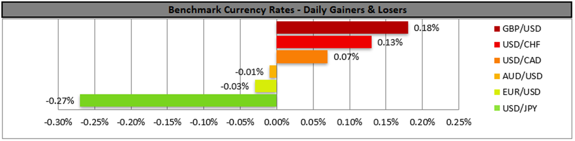 On a technical level, despite some increased volatility the USD remained relatively unchanged against the EUR, with EUR/USD staying between the 1.1010 (R1) and the 1.0890 (S1) levels. Given the movement in the past 48 hours and that the RSI indicator continues to run just below the reading of 50, we tend to maintain our bias for the sideways motion to continue until the market decides on the direction of the pair’s next leg. Should the bulls take over, we may see the pair breaching the 1.1010 (R1) resistance line and aiming for the 1.1135 (R2) resistance level. Should the bears be in charge, we may see EUR/USD breaching the 1.0890 (S1) support line and aiming for the 1.0740 (S2) support level.