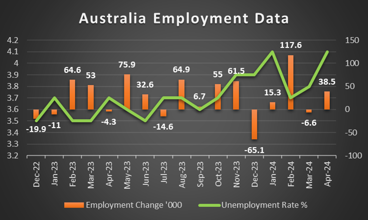 AUD is about to end the week stronger against the USD. On a fundamental level, we once again note the risk deriving from the tensions in the US-Sino relationships. Should there be an escalation in the tensions in the US-Sino relationships we may see them weighing on the Aussie, given the close economic ties between Australia and China. The issue was once again highlighted after the defence secretary for the Philippines which has a mutual defence treaty with the USA, stated that his nation faces an “existential issue” from Beijing, as the territorial dispute in the South China Sea between Beijing and Manila remains elevated. On a macroeconomic level, Australia’s employment data for May showcased a resilient labour market, with the employment change figure for May coming in at 39.7k versus the expected figure of 30.5k, in addition to the nations unemployment rate coming in as expected at 4% which is lower than the prior rate of 4.1%. Yet, despite the positive data the Aussie does not appear to have gained following the release. Nonetheless, Aussie traders may be interested in the release of Australia’s Judo bank manufacturing PMI figure for June next week. Should the figure showcase that the manufacturing sector of the economy has escaped contraction territory, we may see some support for the Aussie and vice versa. On a monetary level, we note RBA’s interest rate decision which is set to occur next week. The majority of market participants are currently anticipating the bank to remain on hold, with AUD OIS currently implying a 97.4% probability for such a scenario to occur. Hence our attention turns to the bank’s accompanying statement, where should RBA policymakers imply that the bank may cut interest rates this year, it could weigh on the Aussie. On the flip side, should it be implied that the bank may keep interest rates higher for a greater period of time, it could instead provide support for the Aussie.