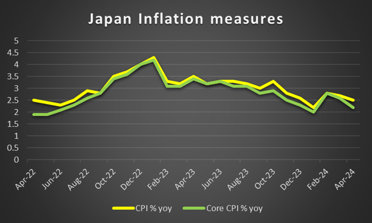 The pound is about to end the week in the reds against the USD and stronger against the EUR yet relatively unchanged against the JPY. On a political level, we note that both the Labour and the Conservations have released their manifesto for the general elections which are set to occur on the 4th of July. In the Sunak-Starmer debate, the opinion polls continue to show a widening margin in favor of the Labor party. The issue has high stakes and given Labor’s widening lead, uncertainty in the UK may rise, as a recent poll by POLITICO shows the conservatives polling at 21%, with their losses seemingly having gone to the right-wing populist party ‘Reform UK’ which is polling at around 15% per POLITICO. On a macroeconomic level, we note the UK’s unemployment rate for April ticked upwards to 4.4% from 4.3%, implying a loosening labour market. Thus, despite the average hourly earnings rate for the same month coming in higher than expected, the increase in unemployment may potentially increase pressure on the BoE to ease its monetary policy sooner rather than later. Moreover, the bad news regarding the UK’s economy seemed to pile up this week, with the industrial production rate and manufacturing production rate both for the month of April coming in lower than expected, implying that the industrial and manufacturing sectors of the UK may be struggling. Thus, in combination with the release of the UK’s GDP rate for April which came in as expected at 0.6% on a yoy level and 0% on a mom basis, the UK economy in our view, is very close to entering recession territory. As such attention may turn to the BoE’s interest rate decision next week, in which the bank is widely anticipated to remain on hold, with GBP OIS currently implying a 90.6% probability for such a scenario to occur. Hence, attention may turn to the bank’s accompanying statement, where should it be implied that the bank may be preparing to cut interest rates at a faster rate than what is currently anticipated, it could weigh on the pound. On the other hand, should the bank’s accompanying statement imply some hesitancy from BoE policymakers to cut interest rates, it could be perceived as hawkish in nature and thus may provide support for the pound. Lastly, we would also like to note the UK’s CPI rates for May which are set to be released next week. Should they imply persistent or even an acceleration of inflationary pressures it may increase pressure on the BoE to maintain its restrictive monetary policy which in turn could support the pound and vice versa.