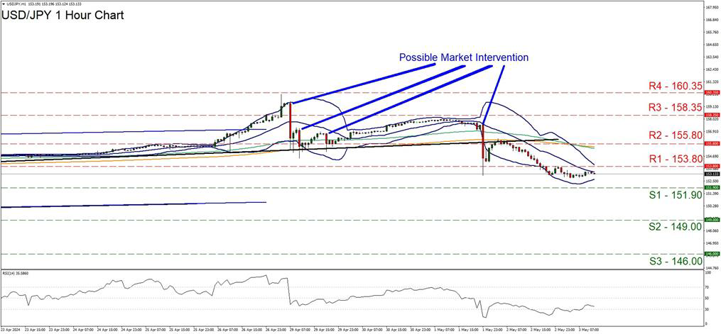 The USD is about to end the week lower against its counterparts, yet the US employment report for April is still to be released and may alter the greenback’s direction. We note that the USD weakened probably also because of the Fed’s interest rate decision. The bank as was widely expected remained on hold, and the accompanying statement highlighted the solid pace of expansions for economic activity, as well as the strong job gains and low unemployment rate. On the inflation front, the bank highlighted the easing of inflationary pressures over the past year yet at the same time also noted that inflation remains considerably above the bank’s target and the Fed “does not expect it will be appropriate to reduce the target range until it has gained greater confidence that inflation is moving sustainably toward 2 percent”. Similar signals of uncertainty seemed to be stemming out of Fed Chairman Powell’s press conference and the market seemed to perceive it as dovish. The market seemed also to have been prepared for a more hawkish approach by the bank as such and after the release, the USD weakened against its counterparts, while US stock markets were allowed to edge higher after falling the day before. For the time being though, we tend to expect Fed policymakers to maintain a more hawkish approach and if actually so, could provide some support for the greenback on a monetary level. On a macroeconomic level, we note the wider-than-expected drop of the ISM manufacturing PMI figure for April, marking a contraction of economic activity for the respective sector in the US. Also, we note that the release of the ISM non-manufacturing PMI figure for April is expected later today. Yet overall given the low number of high-impact financial releases in the coming week we may see fundamentals, including monetary policy, leading the USD and a possible improvement of the market sentiment may cause some safe haven outflows, thus weighing on the USD.