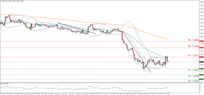 Should the bank deliver a 25-basis points rate hike, with the policymakers fully supporting the rate hike and the bank expressing a confident, hawkish tone to subdue inflationary pressures in the UK economy, we may see the pound gaining, as it would indirectly confirm the market’s hawkish expectations and signal that more rate hikes are to come, while anything less than that could weaken the pound. Should the bulls gain control over the pair we may see it breaking the 1.2615 (R1) resistance line which it was unable to break yesterday and aim for the 1.2765 (R2) resistance level. After the R2 we set the 1.2865 (R3) which used to be a support line back in October 2021 and has now turned to a resistance line, as the next possible stop for the bulls. If the bears take over, we may see GBP/USD dropping, breaking the 1.2425 (S1) support line that withstood the pair’s downward pressure on the 28 of April and take aim of the 1.2330 (S2) support level. Lower than that we note the 1.2250 (S3) support level.