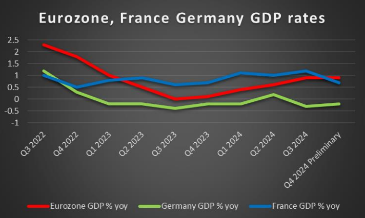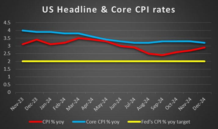On a monetary level, we note ECB’s intentions to cut rates further and Trump’s intentions to impose tariffs on Euro Zone products could act as an accelerator for the bank’s rate cutting path. For the time being the market seems to expect the bank to deliver another three rate cuts in its following consecutive meetings until June. Overall any signals by the bank verifying or even enhancing the market’s expectations could weigh on the EUR. On the flip side inflation in the Zone may not be easing as planned by the bank which could force it to ease on its rate cutting path and such a scenario to provide support for the common currency.