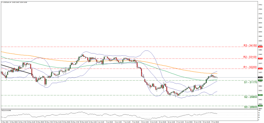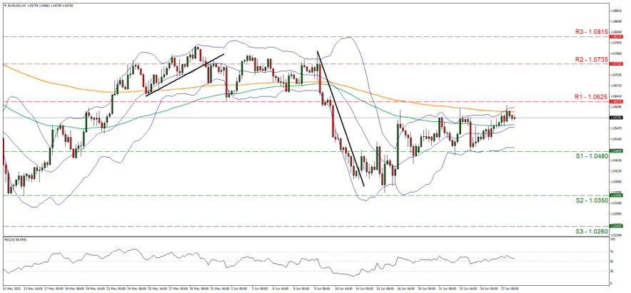 The common currency was on the rise against the USD, but also the GBP and JPY in a sign of wider strength yesterday, yet we must note that it corrected lower during today’s Asian session. It should be noted that EUR traders may have started to price in the possibility of an acceleration of inflationary pressures in the Eurozone as the relevant preliminary releases for June are due out this week. Today in the European session we note the release of France’s consumer confidence for June which is expected to drop a bit and could cause the EUR to slip as it would imply less optimism among consumers of the second largest economy in the Zone. On the monetary front we highlight in the American session ECB President Lagarde which will making the introductory speech at ECB’s Forum on central banking in Frankfurt. At the same forum ECB Board member Schnabel will be speaking and we may see both policymakers reiterating the banks’ intentions for a 25 basis points rate hike in July and a contingent rate hike in September.
