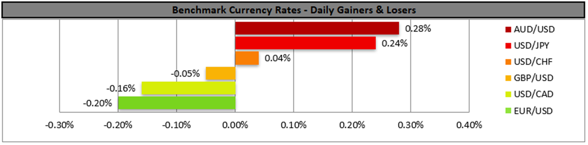 North of the Eurozone we note yesterday in Sweden, Riksbank’s interest rate decision to hike rates by 25 basis points as was expected. We recognise the bank’s hawkishness as mentioned in the last accompanying statement  in the face of a strong inflation which may support the Krona, yet we also maintain some worries for a possible market intervention to its rescue, given that SEK has weakened extensively. Furthermore we also maintain our worries about a possible market intervention from Japan in the rescue of JPY which has weakened substantially in the past few days and given repeated warnings from Japanese officials about the issue including Japan’s Finance Minister Suzuki.