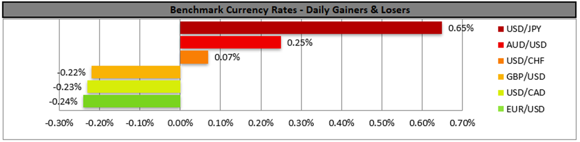 On a technical level, NZD/USD maintained a its sideways motion between the 0.6230 (R1) and the 0.6120 (S1) levels. Given also that the RSI indicator is running along the reading of 50, implying a rather indecisive market, we tend to maintain our bias for the sideways motion to continue. Should the pair find extensive fresh buying orders along its path we may see the pair breaking the 0.6230 (R1) resistance line and aim for the 0.6305 (R2) resistance level. Should a selling interest be expressed by the market we may see the pair breaking the 0.6120 (S1) support level and we set as the next possible target for the bears the 0.6050 (S2) support barrier.
