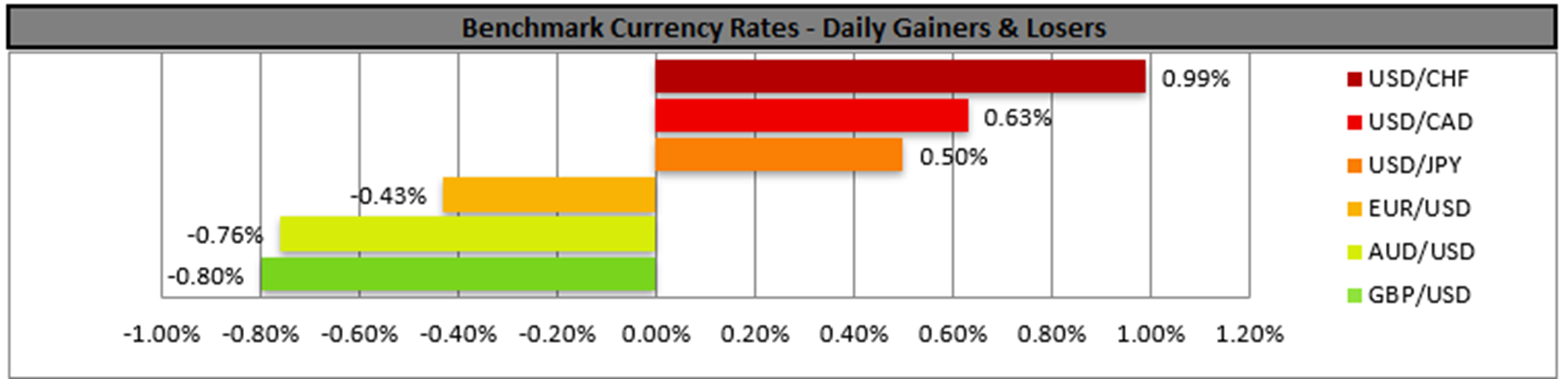 EUR/USD despite the bearish tendencies of the past six days, remained well between the boundaries set by the 1.0600 (R1) resistance line and the 1.0450 (S1) support level. Hence for the time being our sideways motion bias is maintained. The RSI remained at relatively low levels, implying the presence of a bearish predisposition of the market. Yet, we would switch our sideways bias in favour of a bearish outlook in the event of a clear break below the 1.0450 (S1) support level, with the next possible target for the bears being the 1.0330 (S2) support line. Lastly, for a bullish outlook we would require a clear break above the 1.0600 (R1) resistance level, with the next possible target for the bulls being the 1.0730 (R2) resistance line.