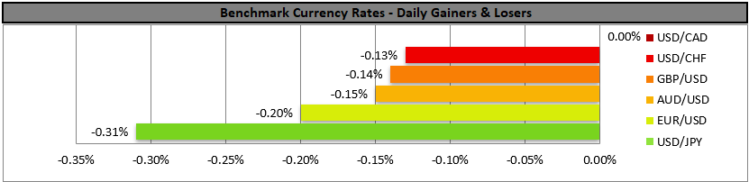 USD/CAD edged higher in today’s Asian session nearing the 1.3720 (R1) resistance line. We maintain a bearish outlook for USD/CAD, given that the downward trendline guiding it remains intact. Also the RSI indicator despite edging higher remains well below the reading of 50, implying a bearish market sentiment for the pair. We set as the next possible target for the bears the 1.3550 (S1) support line. For a bullish outlook, which may be remote but still possible, we would require USD/CAD to break initially the prementioned downward trendline, signalling an interruption of the downward movement, continue to break the 1.3720 (R1) resistance line and start actively aiming for the 1.3880 (R2) resistance hurdle.
