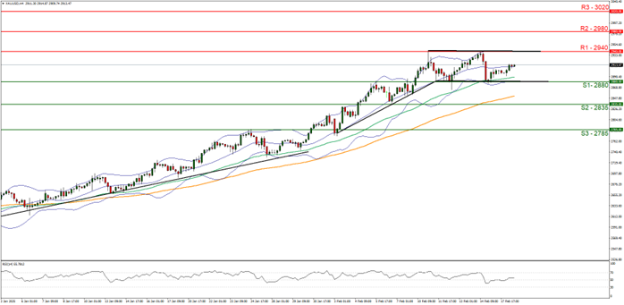 Moreover, we would like to mention our sideways moving channel which was incepted on the 11th of February. For our sideways bias to continue we would require gold’s price to remain confined between the 2880 (S1) support level and the 2940 (R1) resistance line.