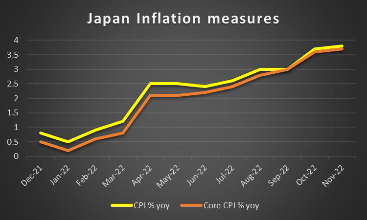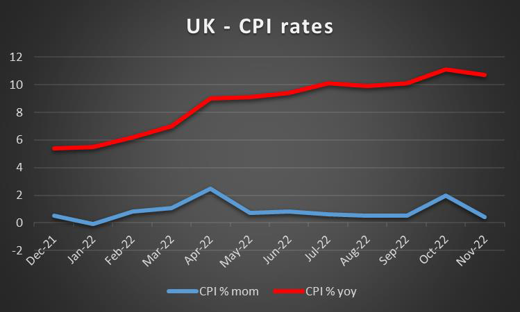The common currency is about to end the week stronger against the USD and the pound, yet seems to be losing ground against the JPY. The results of the week tend to showcase the influence that monetary policy differentials tend to have in the FX market. ECB seems to be sticking to its guns and is to maintain a hawkish approach regarding its monetary policy. It’s characteristic that ECB board member Schnabel stated that ‘Inflation won’t subside by itself,’ implying that more monetary policy tightening is required, while ECB’s chief strategist Philip Lane in a similar tone warned that inflation in the Eurozone, is to remain elevated, despite the possibility of rising energy costs starting to ease. Overall, we tend to maintain the view that ECB’s tightening is to continue on a steady basis and that could provide some support for the common currency, especially against the USD, as market expectations are for the Fed’s hawkishness to ease, currently. On a macroeconomic level, there are a number of signals that tilt on the positive side for the Eurozone, yet nothing conclusive yet. It’s characteristic that the industrial output of Germany got out of the negatives, for November, while Eurozone’s preliminary HICP rate for December slowed down below 10% reaching 9.2% yoy and the area’s retail sales growth rate for November accelerated getting out of the negatives. It seems as if the Eurozone is on the right track yet the worst may still be ahead, given ECB’s tightening.