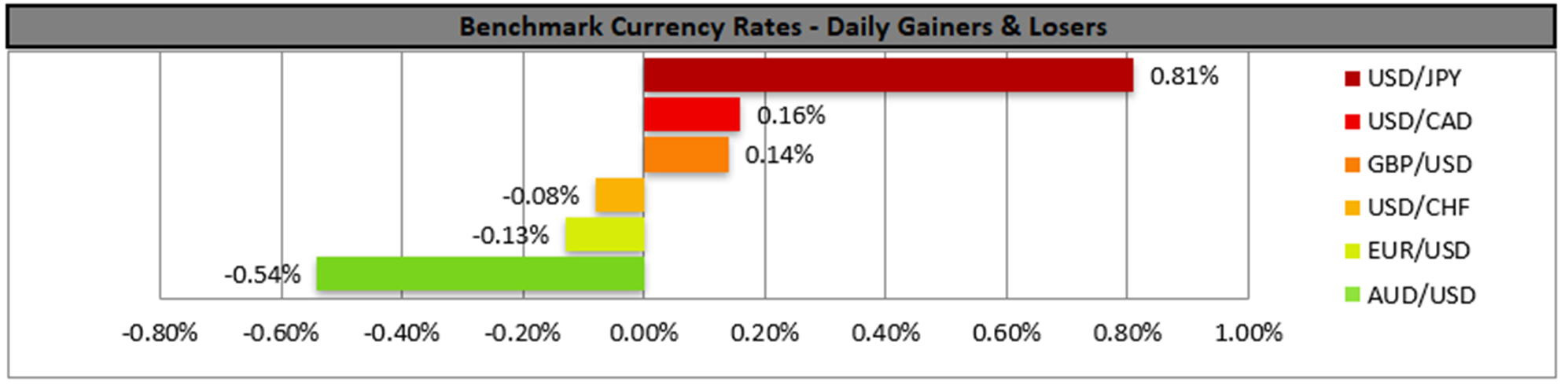 The USD remained relatively unchanged yesterday before starting to gain during today’s Asian session. On a monetary level, the rift between Fed officials regarding the future actions of the bank was highlighted yesterday as NY Fed President Williams stated that the bank may be nearing its peak rate implying that no more rate hikes would be required, as inflation has already started to come down. The statement seems to come into contrast with Fed Board Governor Bowman’s statement that more rate hikes are required. We highlight the planned statements of Philadelphia Fed President Harker and Richmond Fed President Barkin today, with the heavy weight of attention being on the latter as he tends to lean more on the hawkish side. Overall and given the low number of high-impact financial releases stemming from the US today we expect fundamentals to lead the way for the USD.