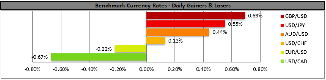Should the rate accelerate as forecasted, surpassing 50 % yoy and given the sensitivity of the Turkish economy on the issue, we may see the pressures rising for the Turkish Central Bank to hike rates and tighten its monetary policy. Thus, in such a scenario we may see the TRY getting some traction. Later we note the release of Switzerland’s CPI rates for the same month. The rate is forecast to accelerate and reach 1.8% yoy if compared to last months’ rate of 1.6% yoy. Should the rate accelerate as forecasted or even more we may see the CHF getting some support as it would imply that inflationary pressures are still on the rise in the Swiss economy, turning the screw on the SNB to abandon its ultra-loose monetary policy.