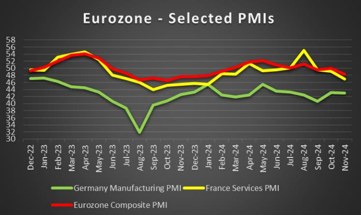 Euro Zone’s fundamentals may be weighing on the single currency as ECB President Lagarde highlighted the risks deriving from political uncertainty and the possibility of Trump imposing tariffs on European products. On a fundamental level, overall political uncertainty is still present as premature elections were called for in February and in France, French President Macron hasn’t appointed a new Prime Minister as these lines are written. The sentiment seems to be pessimistic about the outlook of the Zone and especially in germany. Factories and business are closing and a recession may be on the horizon. Hence Germany’s IfO and ZEW indicators for December on Tuesday and Wednesday may prove to be important and if they fail market expectations may weigh on the EUR.