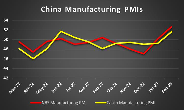 AUD seems to remain relatively unchanged against the USD, maybe edging a bit lower as the week draws to a close. On a monetary level, we note that RBA Assistant Governor Kent seemed to downplay the importance of the banking sector crisis in deciding monetary policy. It was characteristic as he was reported stating that “the Board would consider financial conditions at its next policy meeting in April, but that was just one of many factors”. There was a wide discussion whether the bank would pause its rate hiking path in its next meeting or not, yet the recent rate hikes of the Fed and ECB seem to suggest otherwise. For the time being, we note that the market widely expects the bank to remain on hold in its early April meeting, according to AUD OIS. It should be noted that the bank in the accompanying statement of Governor Lowe for its latest interest rate decision seemed to be easing its hawkishness, also highlighting the possibility that despite an acceleration of the inflation rate, the CPI rate may have peaked. On a more fundamental level, a possible improvement of the market sentiment may benefit the commodity currency AUD while on the flip side, a possible deterioration of the US-Sino relationships may weaken it, given the close Sino-Australian economic ties. On a macro level, we note the contraction of economic activity as displayed by the preliminary PMI figures for March, particularly in the manufacturing sector. In the coming week we note the release of the retail sales growth rate for February which is to show how healthy the demand side of the Australian economy is, while we also highlight the release of China’s NBS manufacturing PMI figure and should the indicator’s reading rise further, that could signal a faster expansion of economic activity in the Chinese manufacturing sector and thus could imply more exports of raw material from Australia to China.
