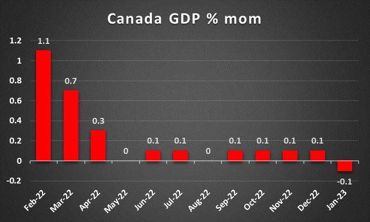 Also, the CAD seems to show little movement against the USD for the week and is about to end near the same levels it began if not lower. It should be noted that Canada’s January retail sales are still to be released and could alter the Loonie’s direction. On a macroeconomic level, we highlight the slowdown of the core and headline CPI rates on a year-on-year level, which may ease the market’s pressure on BoC to resume its rate hiking path. It was characteristic that the bank remained on hold in its last meeting on the 8th of March. It should be noted though that the bank was concerned about inflation remaining above its 2.00%±1.00% target range as in its deliberations ahead of the release the bank noted that services inflation “is proving sticky”, as per minutes released last Wednesday. For the time being, we note that the market expects the bank to deliver another rate hike in the bank’s April meeting hence any dovish comments by BoC policymakers may weigh on the Loonie. On a more fundamental level, we note that WTI’s price seems to edge higher for the week and should the bullish tendencies for the commodity’s price be maintained, we may see some support building up also for the CAD given that Canada is a major oil-producing country. As for financial releases, we would note the release of Canada’s GDP rate for January on Friday and an additional contraction may weaken the Loonie.
