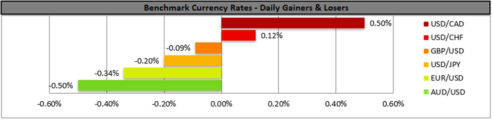 On a technical level, we note that the greenback edged lower against the JPY yesterday and during today’s Asian session, breaking the 143.65 (R1) support line, now turned to resistance.  Given that USD/JPY’s price action was able to break the lower boundary of its past sideways movement, we switch our bias for a sideways motion in favour of a bearish outlook. The RSI indicator is nearing the reading of 30, also underscoring the build-up of the bearish sentiment in the market for the pair, yet the price action has met the lower Bollinger band, which may soften the bears’ approach. Should the selling interest intensify we may see the pair aiming if not breaking the 142.30 (S1) support line in search of lower grounds. On the flip side, should the pair find extensive buying orders along its path, we may see the pair reversing course, breaking the 143.65 (R1) line and aiming if not breaking the 145.10 (R2) resistance hurdle.