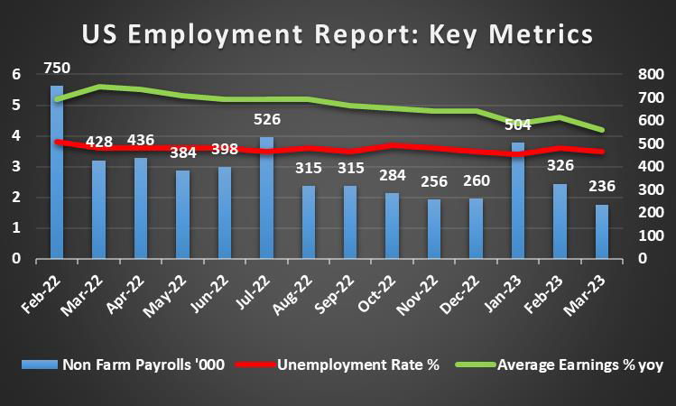 The Loonie weakened against the dollar for the week, reverting to levels seen at the start of the month. Fundamentally we note that a third of Canada’s federal workers are still on strike since last Wednesday, as wage negotiations appear to have reached a stalemate. This may further weaken confidence in the Canadian economy, and as a result if the strikes persist, they may further weaken the CAD. On a monetary tone, the BoC deliberations for the April 12th monetary policy decision, were released on Wednesday. The statement highlighted that the Canadian labour market remains tight, in addition to wage growth remaining within the 4% to 5% range, aiding to the persistent inflationary pressures within the economy. Most importantly were the deliberations on whether to hold or hike interest rates, validating our hypothesis that the bank’s decision to maintain current interest rate levels was temporary in order to facilitate further data gathering. On a macroeconomic level, we note the expectations for a higher-than-expected GDP rate today, which if realized could provide support for the CAD as it would showcase an acceleration of the growth of the Canadian economy in February. We expect CAD to also be driven by financial releases next week with the highlights being on Canada’s trade data for March and especially April’s employment data on Friday. Lastly, we note that WTI erased all gains made by the OPEC+ cut at the start of the month, following Russia’s statement that they see no need for further oil output cuts.