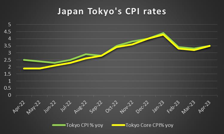 The JPY is about to end the week significantly weaker against its counterparts after the dovish decision by the BoJ. BoJ Governor Ueda following today’s decision to maintain interest rates at current levels, left the Yen once again negatively predisposed for further deterioration, as the interest rate differentials with other central banks continue to widen. In the banks forward guidance statement the following phrase that “short- and long-term policy interest rates to remain at their present or lower levels”, which was included last time the BoJ met under Kuroda, has since been removed, implying that the BoJ may be willing to drop the YCC policy entirely, which was implemented by Mr Ueda’s predecessor Haruhiko Kuroda. The forward guidance is indicative of a shift in the BoJ’s decade-long easing policy, as they enter a new era under the leadership of Governor Ueda. Therefore, by potentially abandoning the ultra-loose monetary policy stance, we may see the JPY gain against its counterparts in anticipation of “tougher” monetary policy. On a macro level, we note the release of Tokyo’s CPI rate, earlier today, exceeded expectations and accelerated to the 3.5% level, the highest in over 40 years placing more pressure on the BoJ to alter its stance in order to protect consumers from excessive purchasing power deterioration. On the contrary the Preliminary Industrial production output and Retail sales rates for March ticked upwards , indicative of a relatively resilient Japanese economy which may provide support for the BoJ to maintain it’s YCC policy for now.