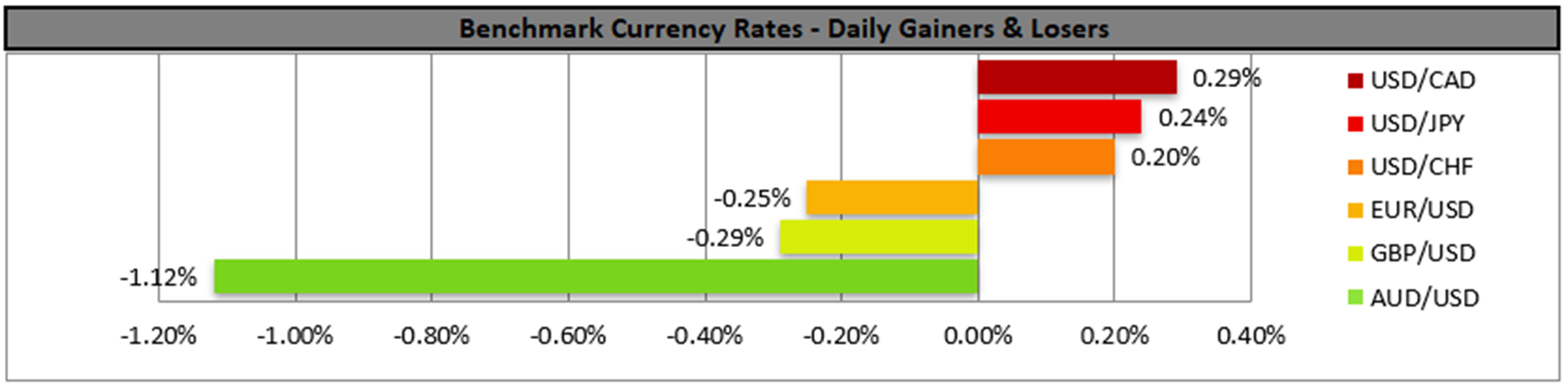 AUD/USD appears to be moving in a downwards fashion. We maintain a bearish outlook for the pair and supporting our case is the RSI indicator below our 4-Hour chart, which currently registers a figure near 30, implying a bearish market sentiment, in addition to the breaking below our upwards moving trendline, which was incepted on the 17a. of November. For our bearish outlook to continue, we would like to see a break below the 0.6515 (S1) support level, with the next possible target for the bears being the 0.6400 (S2) support level. On the other hand, for a sideways bias, we would like to see the pair remaining confined between the 0.6515 (S1) support level and the 0.6620 (R1) resistance level. Lastly, for a bullish outlook, we would like to see a clear break above the 0.6620 (R1) resistance level, with the next possible target for the bulls being the 0.6725 (R2) resistance line.