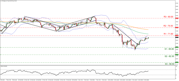 Following the dramatic events of a possible collapse of Credit Suisse last week, market nerves calmed as SNB forced UBS to take over its distressed competitor in an attempt to restore market confidence and ensure financial stability. Even though it is too soon to tell whether the recent turmoil is ultimately over, the market apprehended the news positively. Therefore, since the prospects for a systemic overspill scenario dissipated, energy bulls entered the picture and helped put a floor under WTI prices. Adding more confidence to the case of bulls were the comments by US Treasury Secretary Janet Yellen who stated that the government is willing to take further action to protect deposits, however yesterday she stated that the government is not considering a “blanket insurance” policy. Further comments and developments therefore will be monitored closely as we move forward since a reignition of contagion worries could once again put extensive pressure on WTI prices.