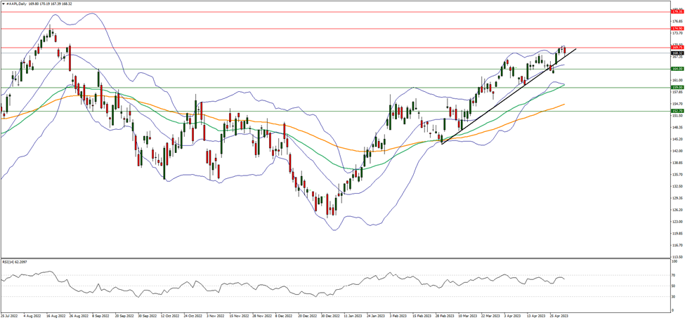 Looking at #AAPL Daily chart we observe investors reacting favorably to news that Apple’s pioneering collaboration with Goldman Sachs, has reaped positive results и aided to the stocks ascent near the $170 level. We hold a bullish outlook for Apple as the stock continues to validate our upwards moving trendline and adding support to our case is the RSI indicator which edges closer to the reading of 70. For our bullish outlook to continue, we would like to see a clear break above the 167.75 (R1) resistance line with the next potential target for the bulls being the 174.90 (R2) resistance barrier. For a bearish outlook, we would like to see a clear break below the 164.00 (S1) support level, with the next possible target for the bears being the 159.00 (S2) support base.