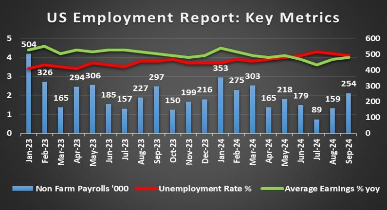 On a macroeconomic level, the US employment data has yet to be released and could easily influence the dollar’s direction. Generally speaking, should the employment data showcase a resilient labour market it may support the dollar and vice versa. In other financial releases, the Core PCE rates for September which are the Fed’s favourite tool for measuring inflationary pressures came in hotter than expected, which may increase calls for the Fed to withhold from aggressively cutting interest rates in the near-term. Thus, the implications of persistent inflationary pressures in the US economy may have aided the greenback.