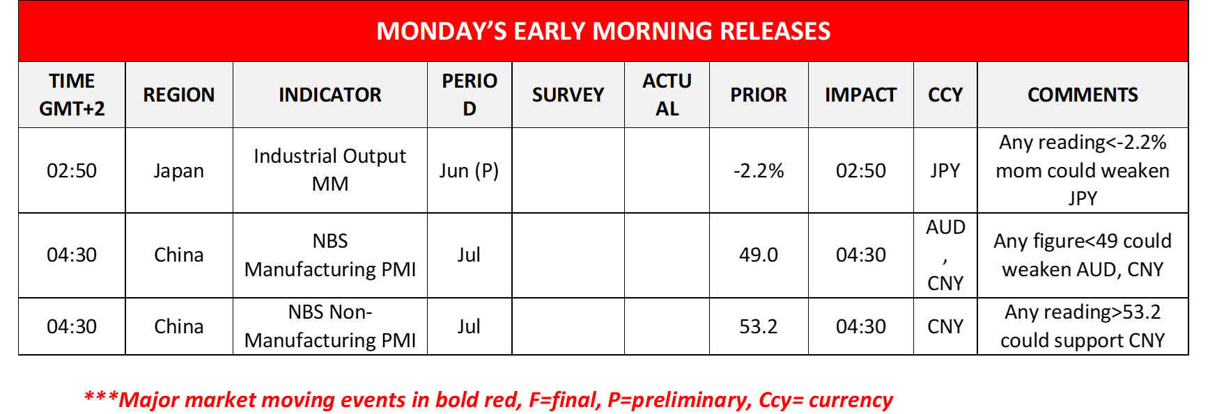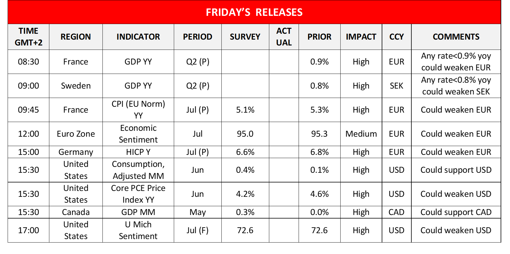 Today in the European session, we note the release of France’s and Sweden’s preliminary GDP rates for Q2, France’s and Germany’s preliminary GDP rates for July and the Eurozone’s economic sentiment for July. In the American session, we note from the US the release of the Consumption rate and the Core PCE Price Index, both being for June as well as the final University of Michigan Consumer Sentiment for July, while from Canada we get the GDP rate for May. In Monday’s Asian session, we get Japan’s preliminary industrial output rate for June, and China’s NBS July PMI figures, with the heavy point being placed on the manufacturing sector.