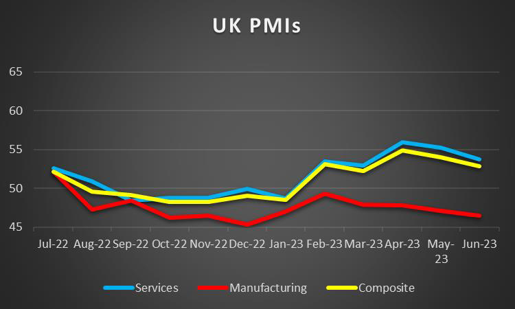 The common currency ends the week lower against the USD, GBP and JPY in a sign of wider weakness for the common currency in the week. On a fundamental level, we note that the raging wildfires in Greece appear to be continuing and the overall rather extreme climate conditions in Europe may weigh on the common currency. On macroeconomic level, the Preliminary PMI figures for July for France, Germany and the Eurozone as a whole, could be described as a bloodbath. The Preliminary PMI figures where indicative of a continued deep contraction, spiking fears of a recession in the largest economies of the Eurozone, which in turn weigh heavily on the euro. Should these fears continue to be validated by future financial releases, we may see the common currency, losing ground to its counterparts, as it becomes more evident that a recession is inevitable in the Eurozone. Furthermore, traders may be looking at the Eurozone’s Preliminary HICP rate for July and Preliminary GDP rate for Q2, for more clues as to how the Eurozone as a whole is faring with the high levels of interest rates. On the monetary front, we highlight the ECB’s interest rate decision yesterday, where the bank hiked by 25 basis points as was expected. The key take away however, was ECB President Lagarde’s press conference, where when asked by a Bloomberg reporter about the remaining ground that needed to be covered with interest rates, the ECB President replied with “At this point, I don’t think so” , hinting that the bank may be reaching its terminal rate faster that what was previously anticipated, as such with the end in sight, we may see the common currency further seceding ground to its counterparts. In our view, the current financial releases stemming from the Eurozone, could be indicative of the high interest rates, having a meaningful impact on the war against inflation and as such should the ECB continue down it’s current path , we may see a deep recession being induced by the bank.