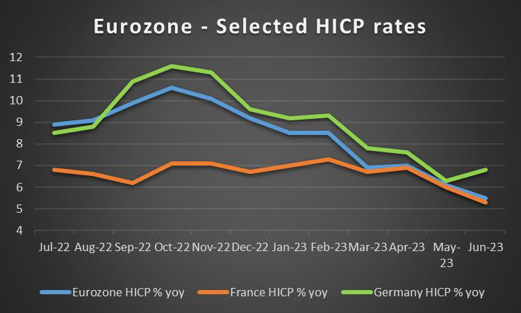 The USD seems to continue to remain in the greens for a second week in a row against its counterparts. On a macroeconomic level, we note the continued albeit narrowed contraction of economic activity in the US manufacturing sector as per the US Preliminary S&P Manufacturing PMI figure in July. Our worries tended to intensify, for the sector yet the release of the US Preliminary GDP rate for Q2, came in better than expected with the actual rate accelerating to 2.4%, despite expectations for a slowdown to 1.8%. Furthermore, the initial jobless claims figure came in at 221k compared to the expected 235k and may have been indicative of a continued tight labour market in the US. The releases tended to highlight the resilience and prospects of the US economy. Therefore, we anticipate that next week’s release of the US Employment Report for July may shed some light on the tightness of the US labour market and should the rates and figures show a tight US employment market we may see the greenback gaining. On a monetary level, we note that the Fed hiked interest rates, as was widely expected by 25 basis points, with Fed Chair Powell leaving the door “open” for a potential September rate hike. In addition, we believe that based on the accompanying statement , the bank would now appear to be more data oriented, with its predisposition for rate hikes, now been shunned aside in favour of a more data oriented approach. In conclusion, despite the better than expected GDP growth rate for Q2, we anticipate that the bank will favour a more cautious approach and remain on hold in its next meeting, in order to allow for the bank to assess the impact of the continued high-interest rates on the economy.