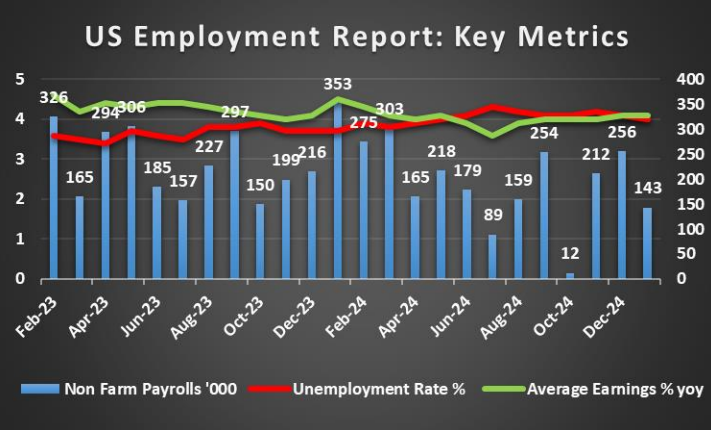 Under ‘normal’ circumstances, the anticipated easing of the labour market, could spur Fed policymakers to adopt a more ‘dovish’ tone, i.e implying possible rate cuts in the future as full employment is part of the Fed’s dual mandate. However, as we have continuously stressed, the President’s tariff ambitions raise serious concerns over the possibility of a resurgence of inflationary pressures in the economy and thus the Fed may require the tariff narrative to play out before attempting to gauge the true impact on the US economy.