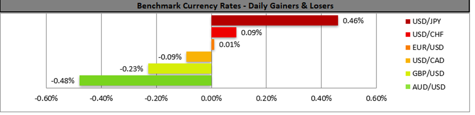 AUD/USD appears to be moving in a downwards fashion, with the pair appearing to be testing support at the 0.6400 (S1) level. We maintain a bearish outlook for the pair and supporting our case is the RSI indicator below our chart, which broke below the figure of 50, implying a switch from a bullish to a bearish market sentiment. For our bearish outlook to continue, we would like to see a clear break below the 0.6400 (S1) support level, if not also breaking below the 0.6285 (S2) support level with the next possible target for the bears being the 0.6170 (S3) support base. On the other hand, for a bullish outlook, we would like to see a clear break above the 0.6515 (R1) resistance level, with the next possible target for the bulls being the 0.6620 (R2) resistance ceiling.
