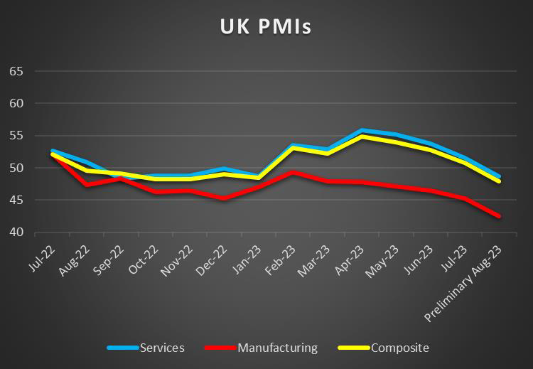 The USD continued its upward trajectory against its counterparts for the 6th week in a row. On a fundamental level, we highlight that following a Fitch credit rating analyst allegedly claiming that they may be forced to downgrade a number of US bank, S&P has also joined on the downgrading bandwagon, having downgraded multiple US banks on Tuesday after citing “tough” lending conditions. The “tough” lending conditions, appear to be in line with fears that the banks may be overexposed to commercial real estate, seems to be at the top of the credit rating agency’s concerns. On a monetary level, we highlight the expected speech by Fed Chair Powell at Jackson Hole Today, where he is widely anticipated to answer questions on the Fed’s current interest rate policy, with investors potentially hoping to hear re-assurances by the Fed Chair that the Fed is on track to cut rates by mid-2024. The Fed Chair’s speech is due to garner attention following last week’s statements by Minneapolis Fed President Kashkari who hinted that more rate hikes may be required. On a macroeconomic level, we highlight the US PMI preliminary PMI figures that were released on Wednesday which where indicative of a continued contraction in the US manufacturing industry and a slowdown in the US services industry. In addition to the lower-than-expected existing home sales figure for July, seems to be spiking fears about the resilience of the US economy. Looking into what next week has in store for us, we would be highlighting the US JOLTS Job openings figure on Tuesday, the US ADP Employment data, US Preliminary GDP rate for Q2 and the Preliminary Core PCE Prices rate for Q2 on Wednesday and on a busy Friday the US Employment data for August followed by the S&P Final and ISM Manufacturing PMI figures for August.