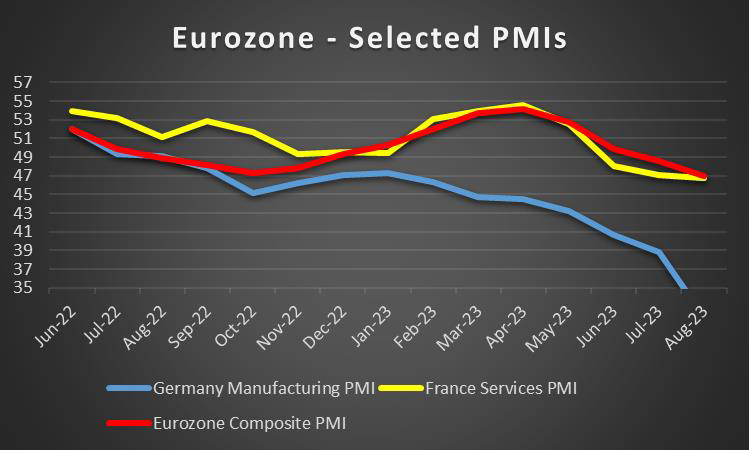 EUR – PMI figures across the Eurozone might be sounding some alarm bells in Europe