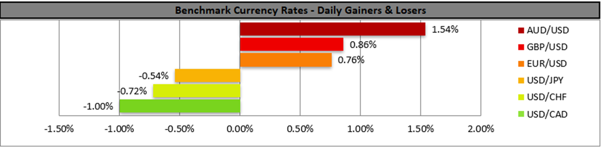 AUD/USD continued its upwards trajectory, as the dollar weakened. We maintain our bullish outlook for the pair as long as the upwards trendline remains intact, in addition to the RSI indicator remaining above 50. For our bullish outlook to continue, we would like to see the pair make a clear break above the 0.6660 (R1) resistance level with the next potential target for the bulls being the 0.6730 (R2) resistance ceiling . On the other hand, for a bearish outlook, we would like to see the pair make a clear break below the 0.6595 (S1)  support level which would coincide with the breaking of the prementioned upwards trendline, with the next possible target for the bears being the 0.6505 (S2) support base.