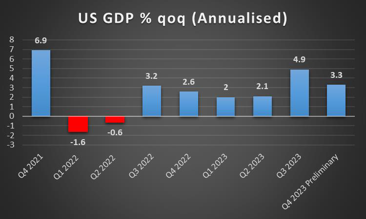The USD is about to end the week a tad bit lower against its counterparts breaking a six-week winning streak. On a fundamental level, we note the release of the Fed’s January meeting minutes. The bank in its minutes displayed a hesitation to proceed with rate cuts, contradicting the market sentiment yet, failing to excite the markets. It should be noted that the markets’ expectations continue to shift, aligning with the Fed’s narrative of fewer rate cuts and currently FFF imply that the 1market expects the bank to cut rates three maybe four times next year, starting from July onwards. A continuance of the Fed’s narrative for a slower easing of its monetary policy may provide some support for the USD in the coming week on a monetary level. On a fundamental level, the pre-election period in the US and the tensions between Washington and Moscow on an international level, seem to be preoccupying the markets, yet with little effect until now. On a macroeconomic level, we note an easing in the expansion of economic activity in both the manufacturing and services sector according to the preliminary S&P PMI figures for February, which could be expected, the figures as such are still pretty good if compared to other developed economies. On a macro level, in the coming week we expect market focus to be placed on the revised GDP rate for Q4, and should the rate accelerate if compared to the preliminary release the narrative of the Fed for a soft landing could be enhanced and support the USD.